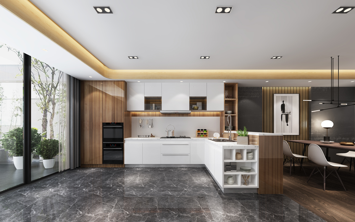 櫥柜面板的抗油污能力,則與面板的材質(zhì)相關(guān)??酒崦姘褰?jīng)過(guò)涂層的固化之后,耐候性和穩(wěn)定性都變高,具有一定抗油污能力,但是如果長(zhǎng)期在油煙熏蝕的環(huán)境下,色彩會(huì)出現(xiàn)一定的色差。吸塑面板經(jīng)過(guò)PVC膜模壓成型,耐污性能很好,也容易清潔。通常來(lái)說(shuō),表面光滑的材質(zhì)會(huì)比磨砂材質(zhì)在防污能力上更勝一籌,減少油污的吸附面積,并且也容易清洗。