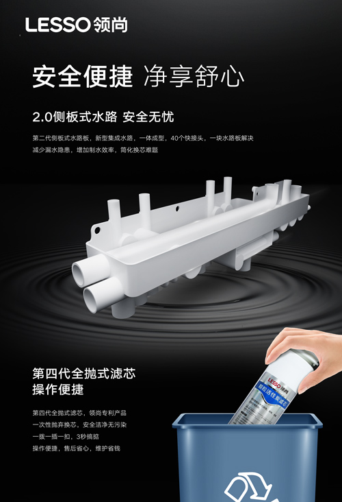 第四代全拋式濾芯,操作便捷:領(lǐng)尚專利產(chǎn)品,一次性拋棄換芯,操作便捷,3秒搞定