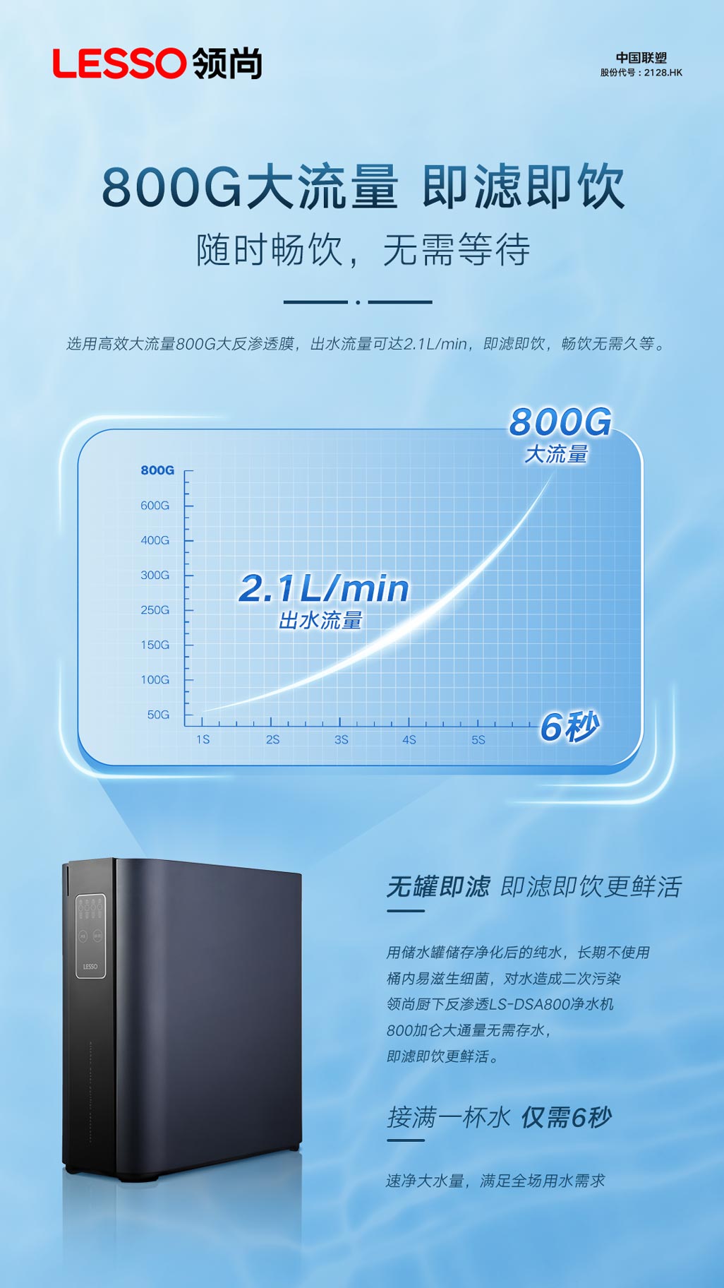 ③800G大流量,即濾即飲,家用大流量之王