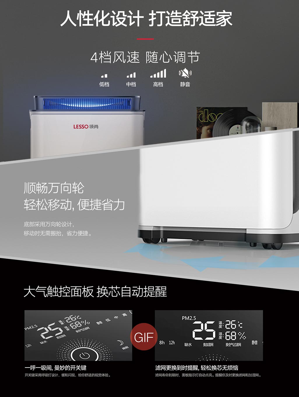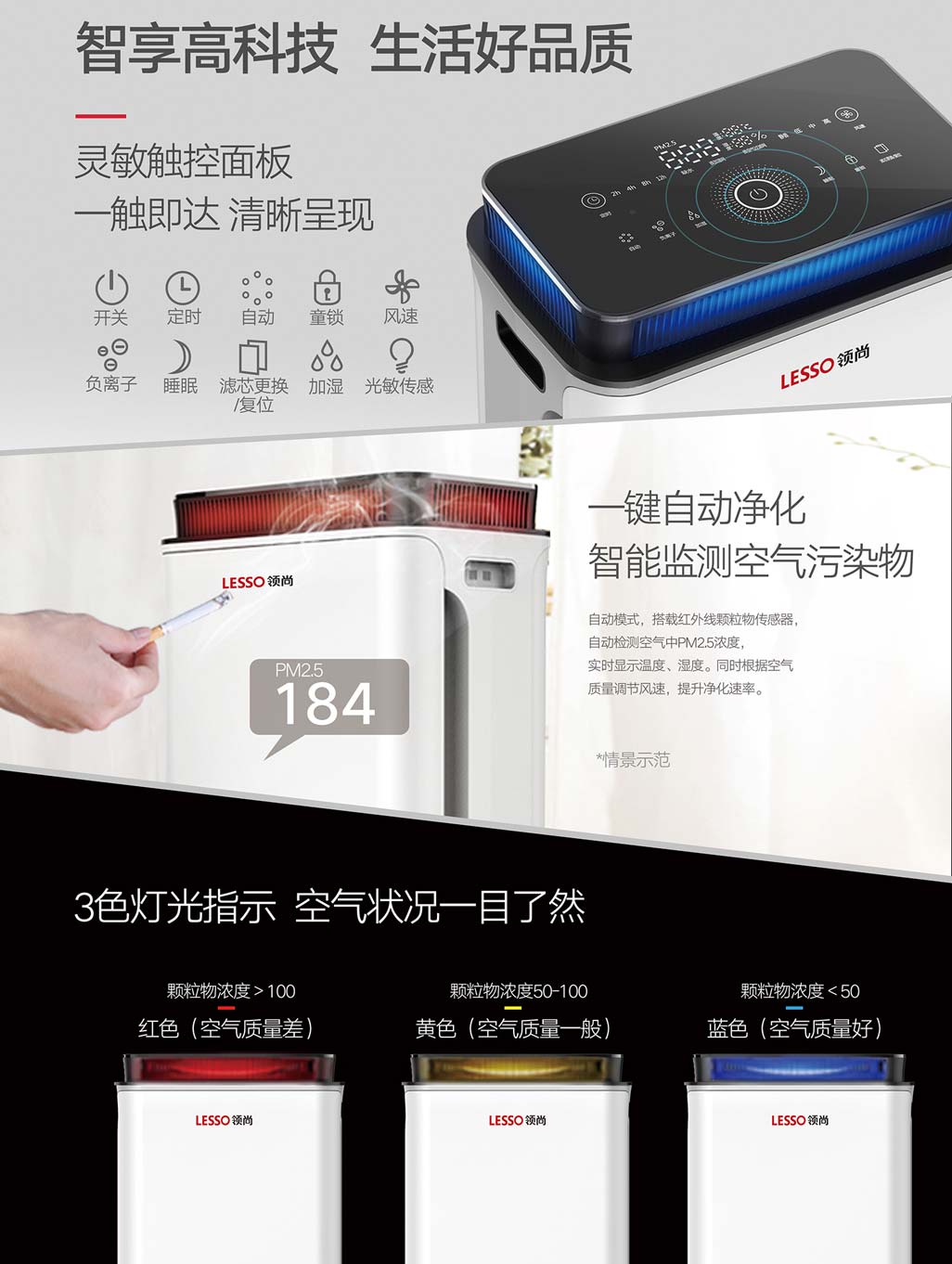 智能觸控,輕松切換各種凈化模式,智能溫潤加濕