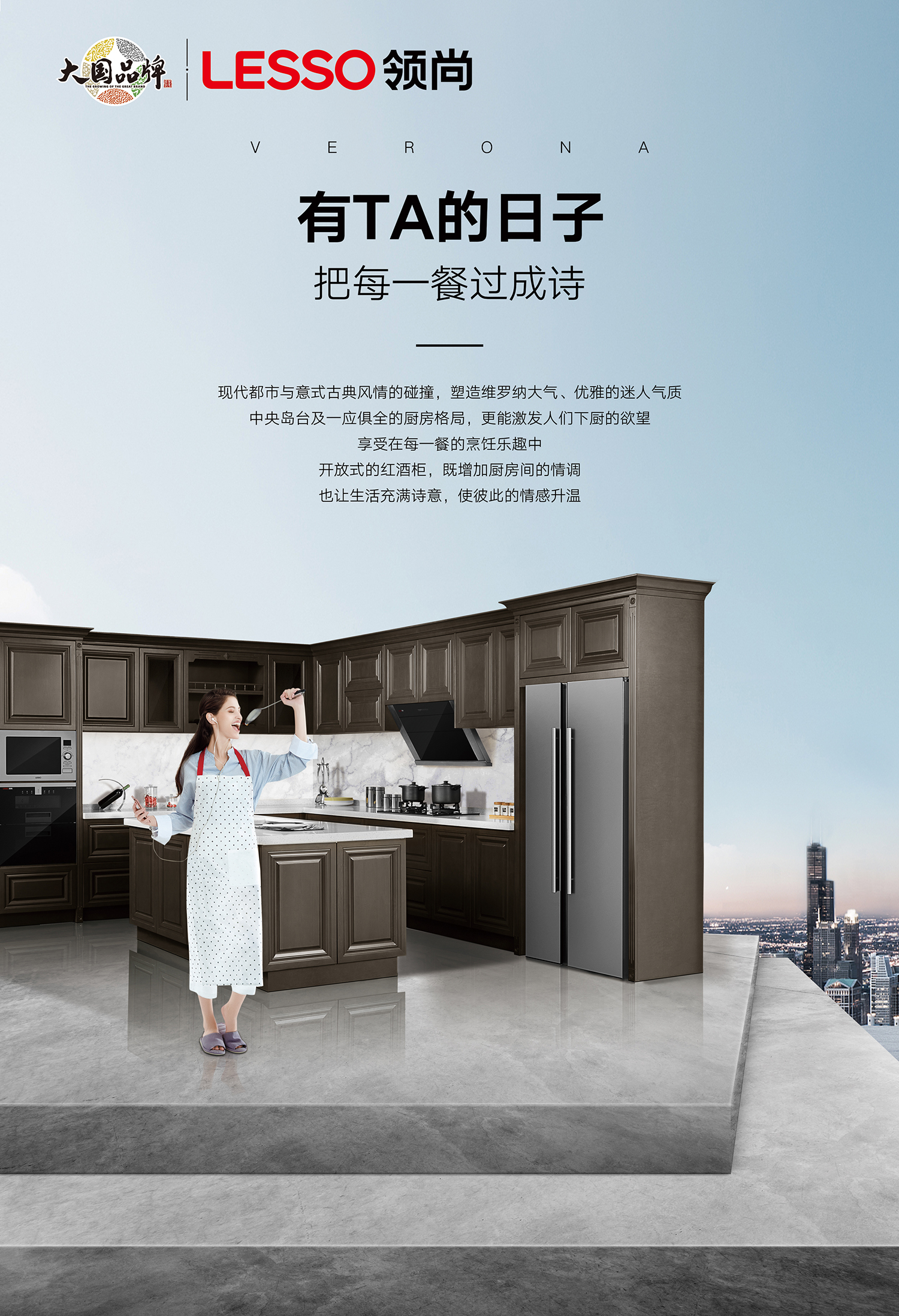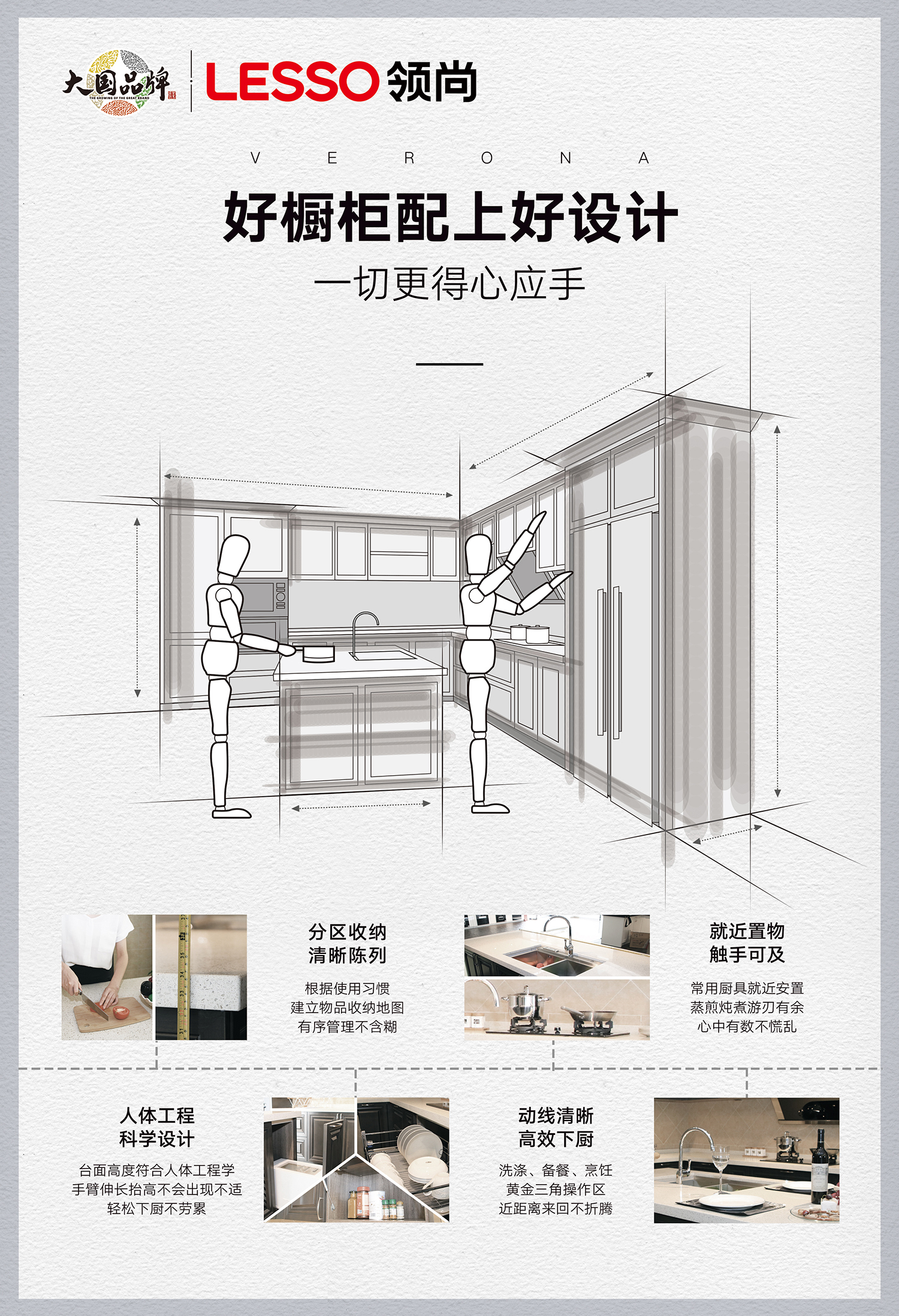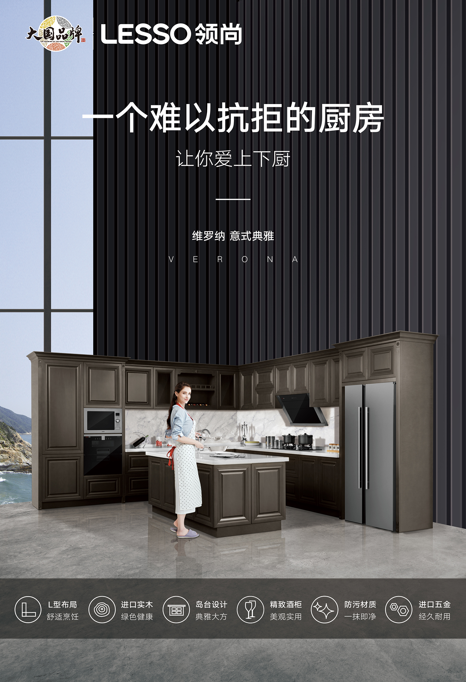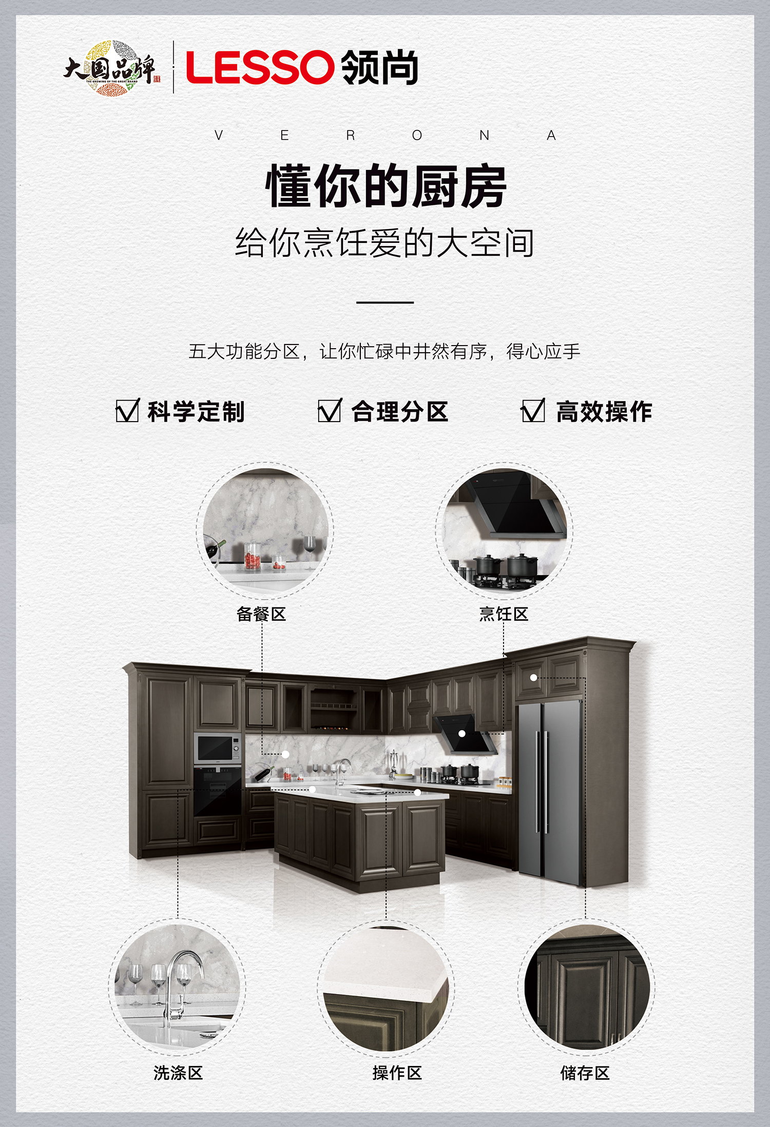 2、L型的設(shè)計(jì)加上中島臺(tái),提供了更寬敞的操作空間,內(nèi)嵌式的廚電使得廚房空間整體更顯整潔,產(chǎn)品整體感更強(qiáng);