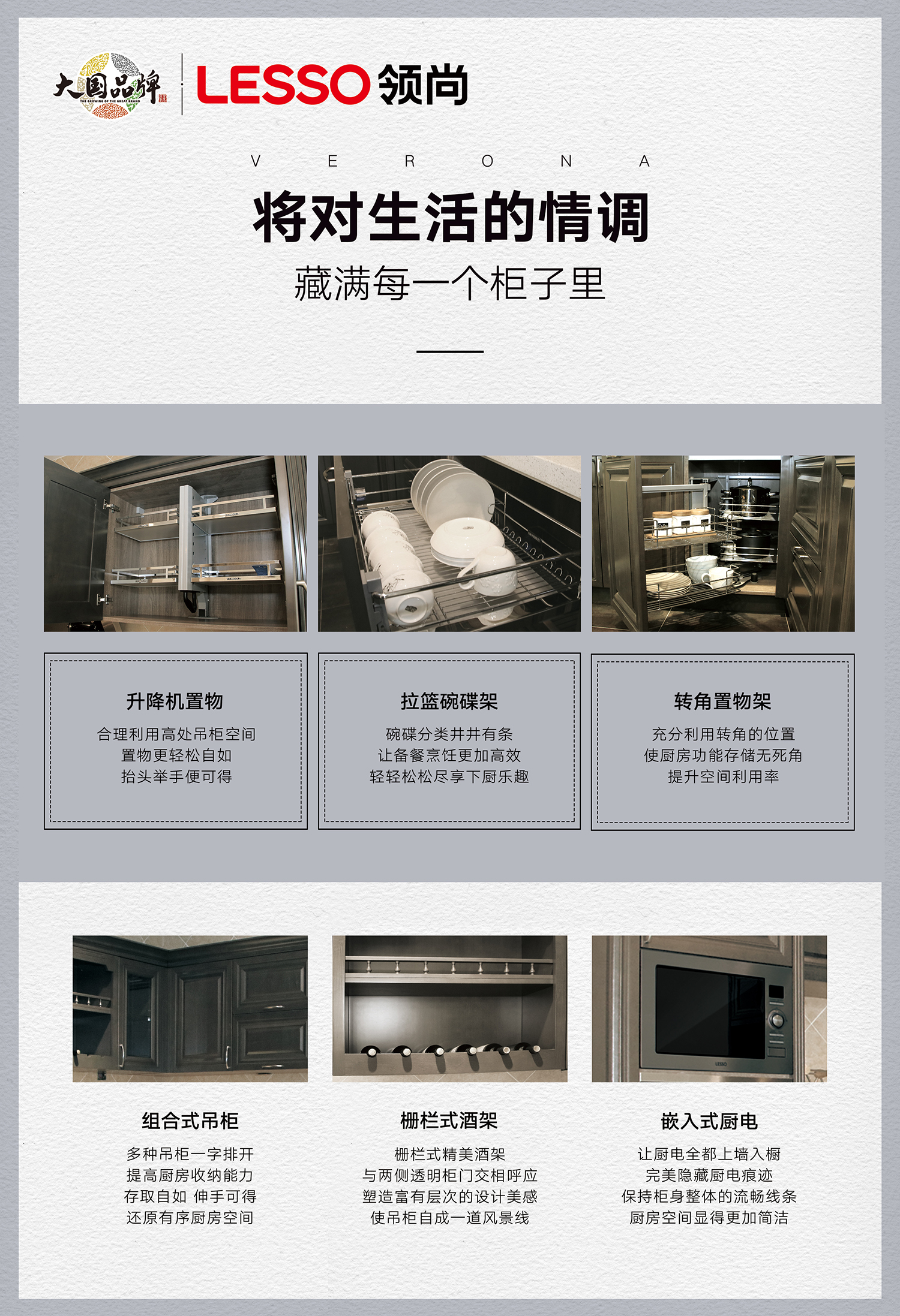 3、吊柜配置精致酒架,結(jié)合兩側(cè)透明材質(zhì)的吊柜柜門,作為整體產(chǎn)品的點(diǎn)綴,為櫥柜整體增加設(shè)計(jì)感。