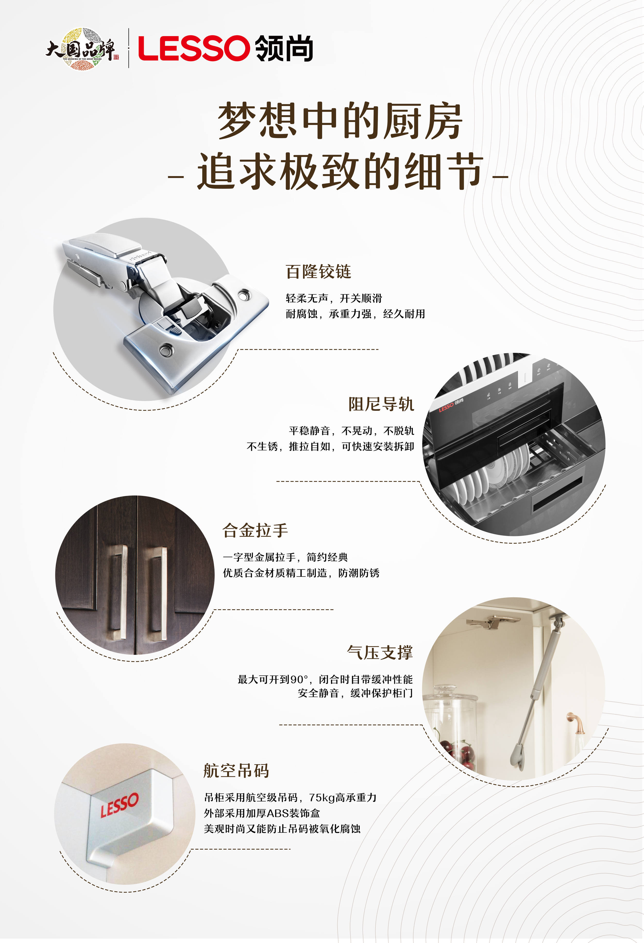 在現(xiàn)代家庭裝修中,廚房作為生活的核心區(qū)域之一,其設(shè)計(jì)與布局直接影響到居住的舒適度和烹飪效率。為了滿足不同家庭對(duì)廚房空間的需求,LESSO整體廚房櫥柜為用戶提供了一站式定制方案,幫助您設(shè)計(jì)出符合人體工學(xué)、功能齊全的廚房空間。