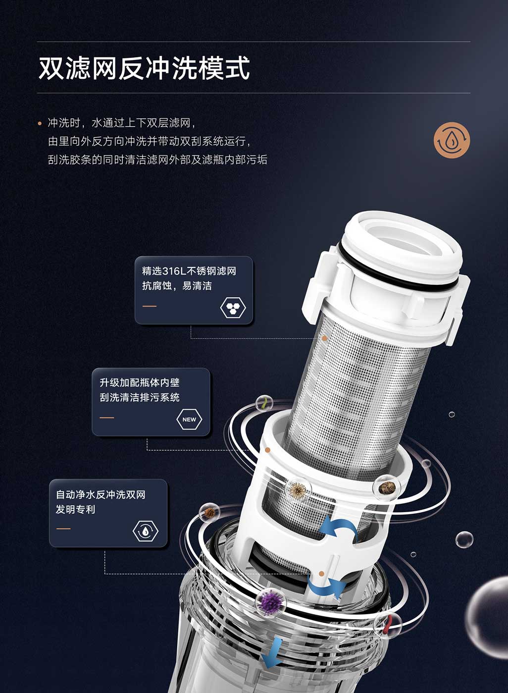 ①40微米高效精濾,食品級不銹鋼濾網(wǎng),有效阻擋紅蟲、泥沙等雜質(zhì)