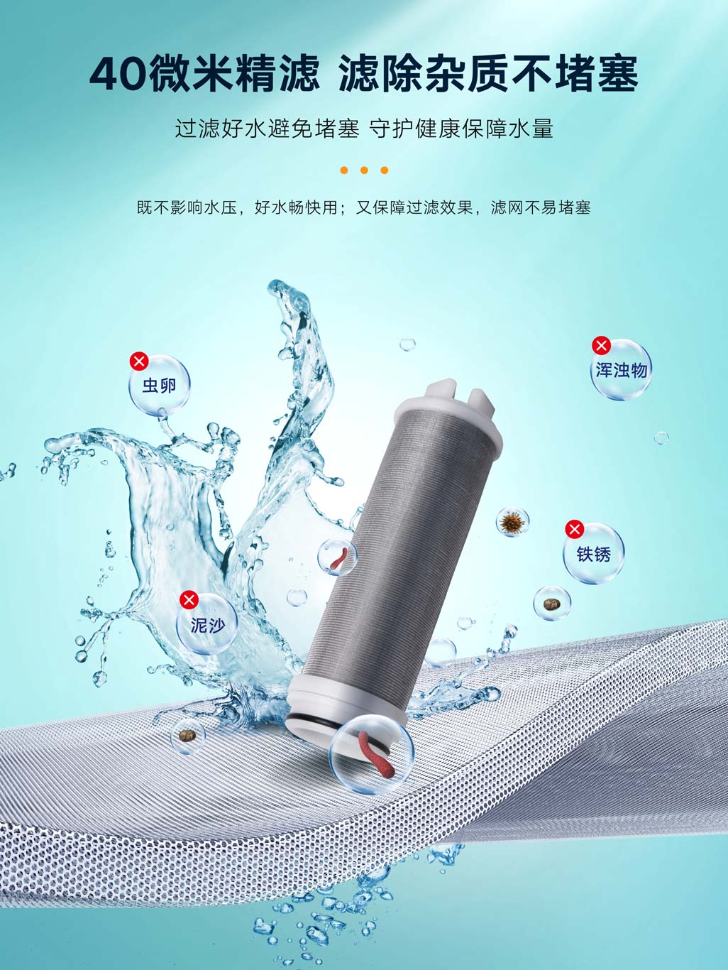 ②40微米高效精濾,食品級不銹鋼濾網(wǎng),有效阻擋紅蟲、泥沙等雜質(zhì)